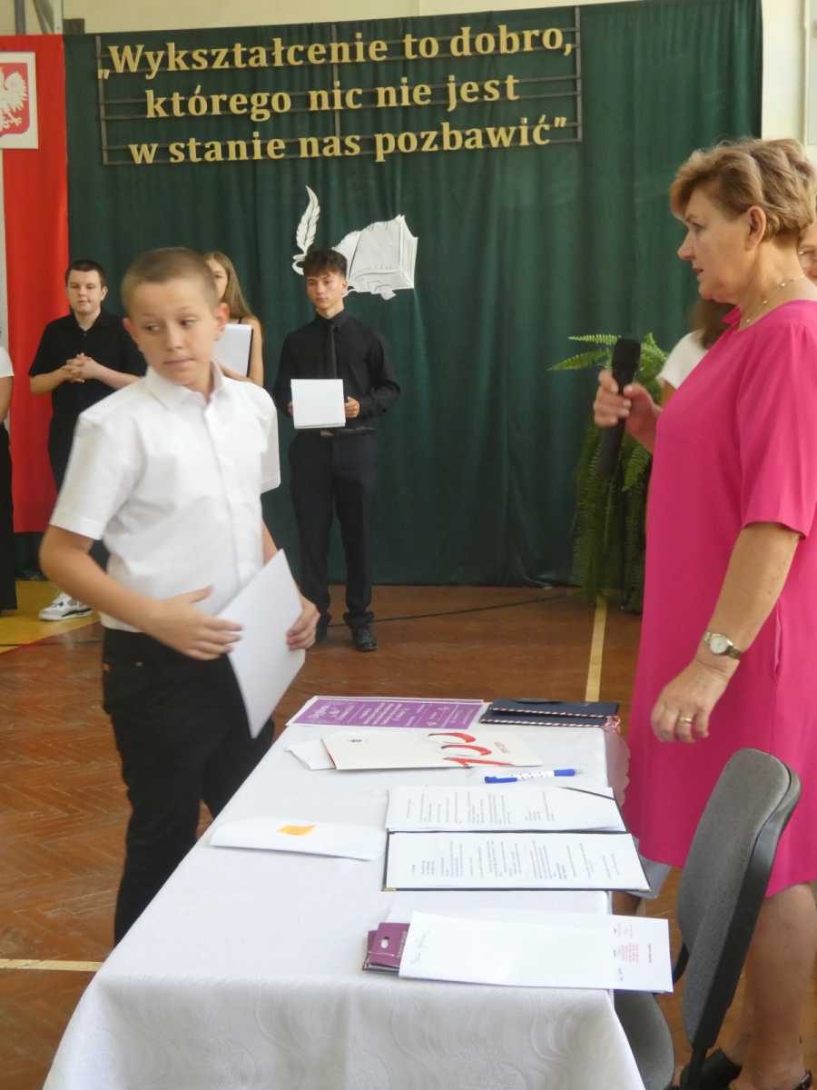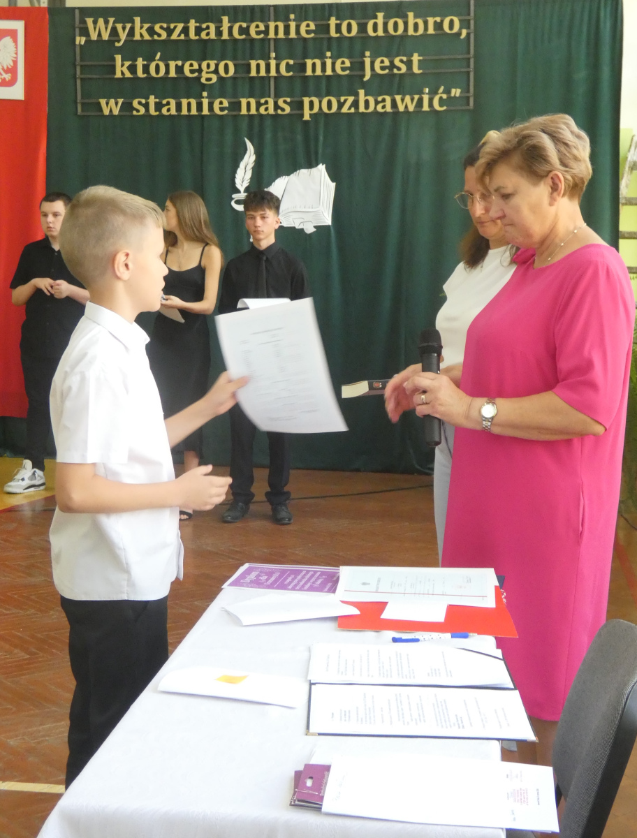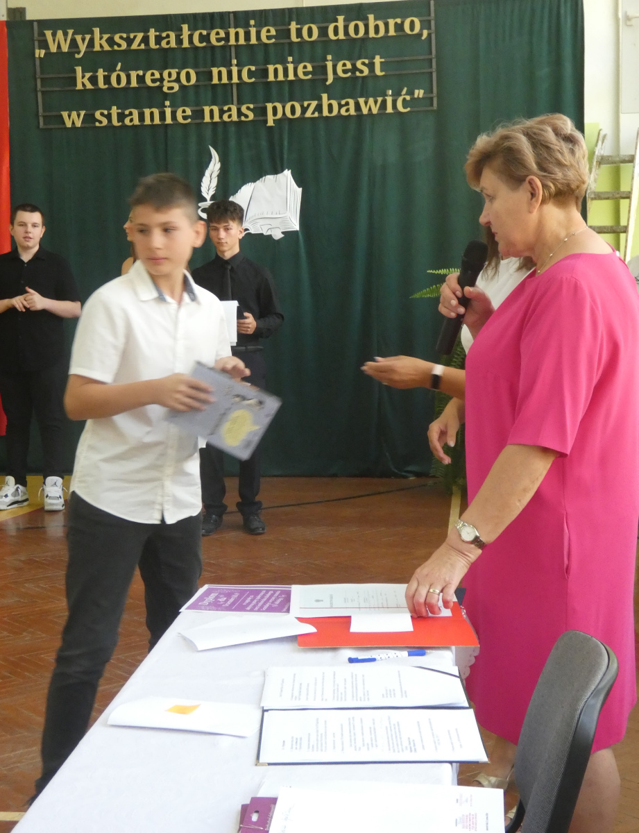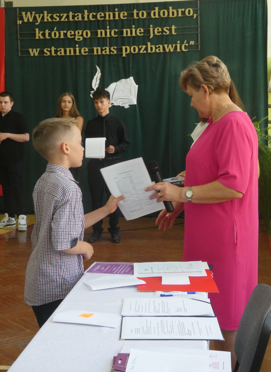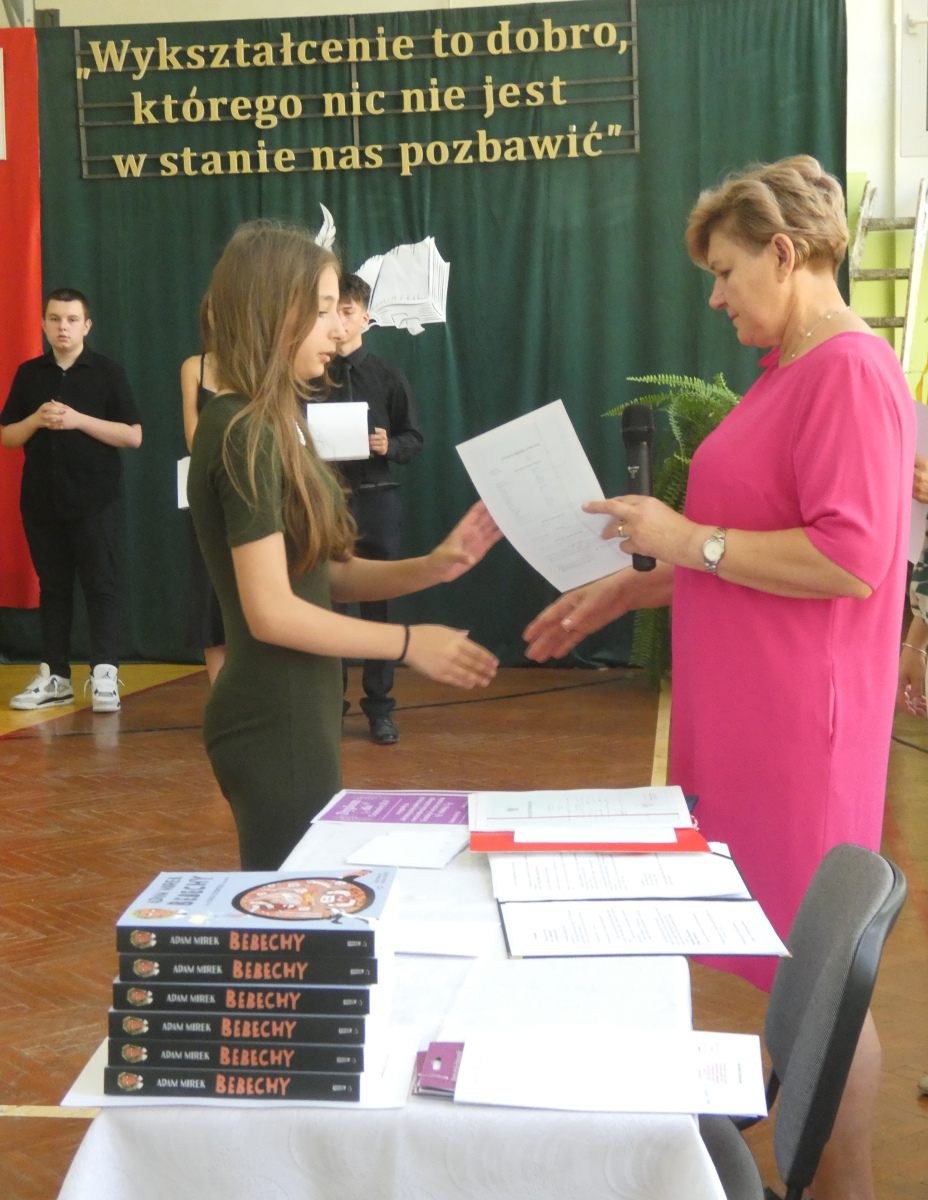 W końcu nadszedł tak bardzo wyczekiwany przez wszystkich uczniów ostatni dzień szkoły. 21.06.2024 r. odbyło się uroczyste zakończenie roku szkolnego 2023/2024. Dyrektor szkoły pani Romana Dubas podsumowała osiągniecia dydaktyczno-wychowawcze oraz wręczyła nagrody uczniom, którzy uzyskali świadectwo z wyróżnieniem, wykazali się w konkursach, zawodach czy pracy na rzecz szkoły.