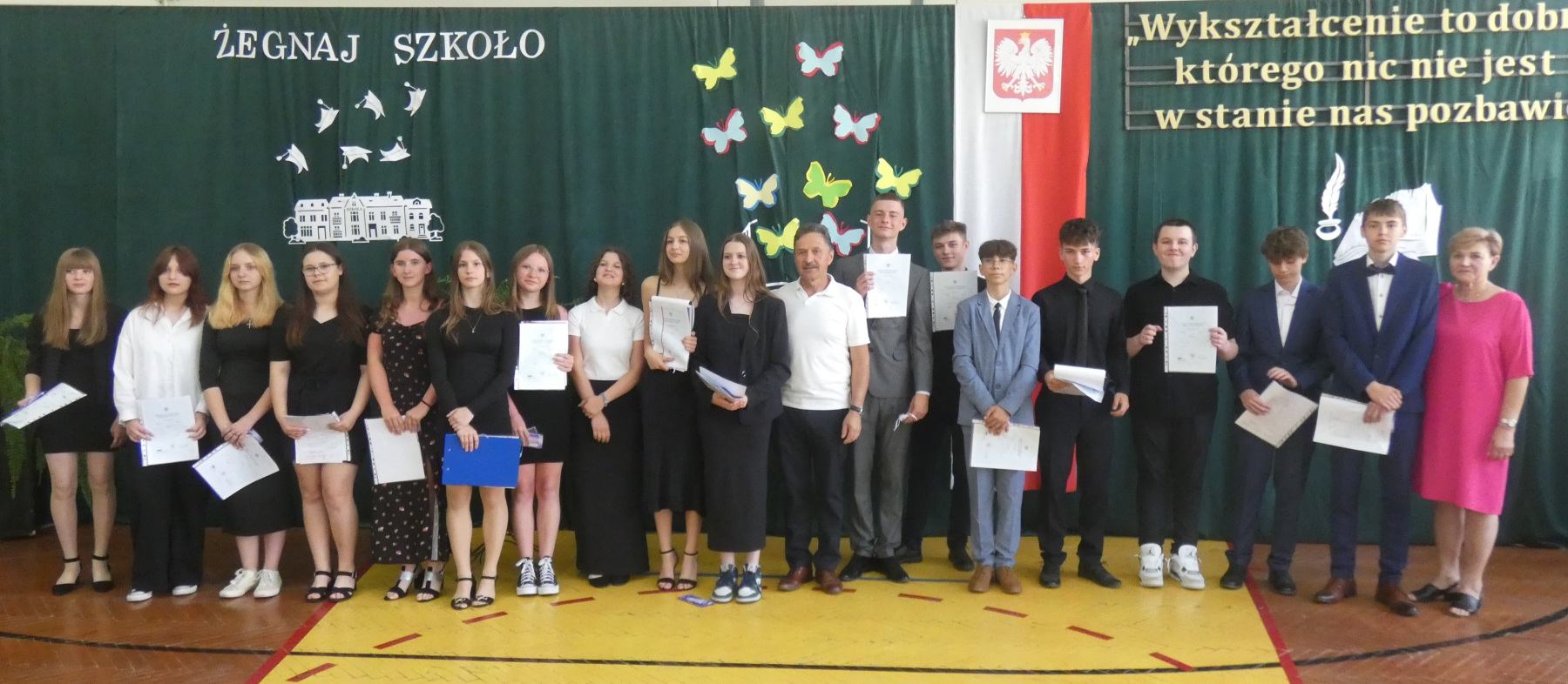Dzisiaj był to również wyjątkowy dzień dla naszych uczniów klasy ósmej, którzy spotkali się w tym gronie po raz ostatni. Gratulujemy Wam ukończenia szkoły. Dziś kończy się pewien etap Waszego życia, czeka Was nowa szkoła, nowi nauczyciele i koledzy. Życzymy Wam, by każda nowo zawarta przyjaźń okazała się szczera i wierna. Nowi nauczyciele niech będą wyrozumiali i sprawiedliwi. Mamy nadzieję, że będziecie wracać myślami do lat szkolnych, do naszych wspólnych chwil.
