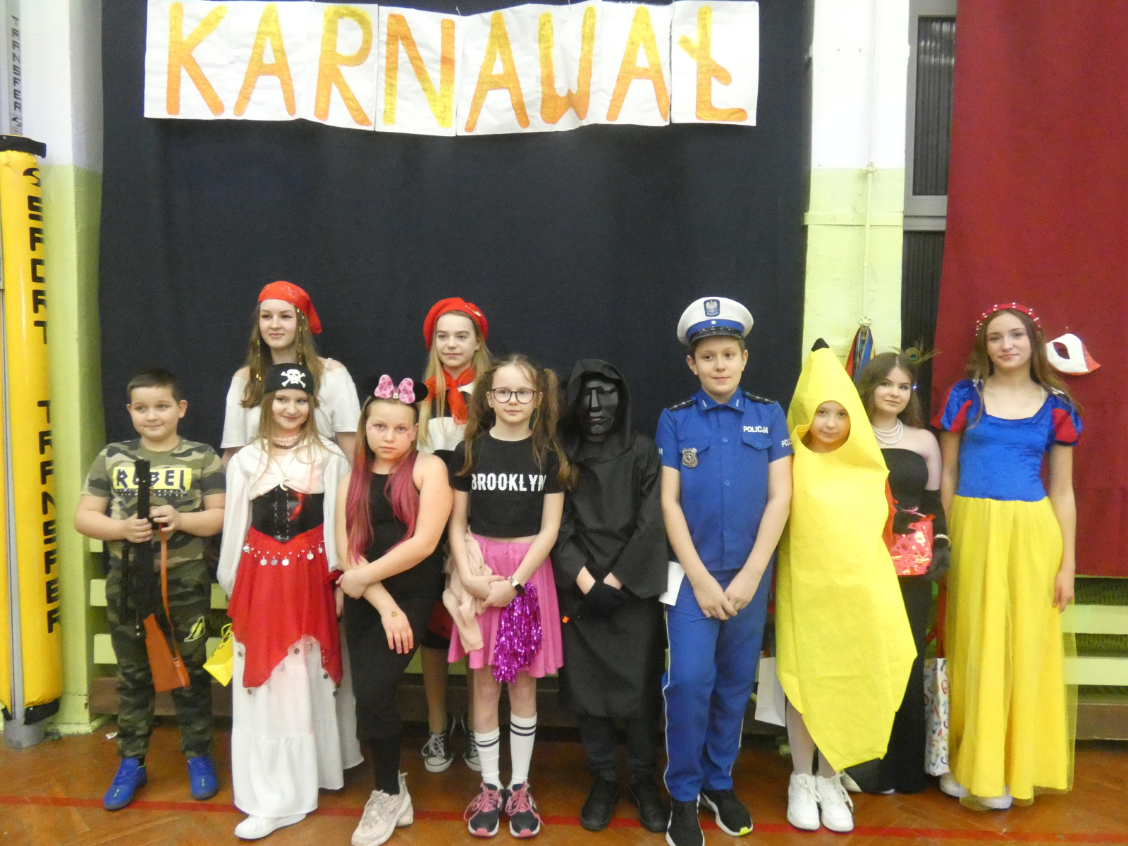 Karnawał to wspaniały czas zimowych balów, tańców i zabaw. 13 lutego 2025 r. uczniowie naszej szkoły wzięli udział w balu karnawałowym. Od samego rana dzień pełen był atrakcji. Młodsze dzieci z klas 1 – 3 mogły bawić się na dmuchańcach, był popcorn, wata cukrowa. Po południu sala gimnastyczna zapełniła się tancerzami. Tego dnia sporo dzieci pojawiło się w szkole przebranych w barwne postacie bohaterów bajek i filmów. Przebrani uczniowie wzięli udział w konkursie na najciekawszy kostium. Dzieci świetnie się bawiły przy akompaniamencie DJa oraz uczestnicząc w prowadzonych przez animatorkę zabawach. Podczas pląsów było kolorowo, wesoło, uśmiech nie znikał z twarzy dzieci. Siły regenerowali przy posiłku przygotowanym przez Radę Rodziców. Wspólna zabawa odbyła się w miłej atmosferze oraz przyniosła wiele radości i zadowolenia. Kolejny bal już za rok!